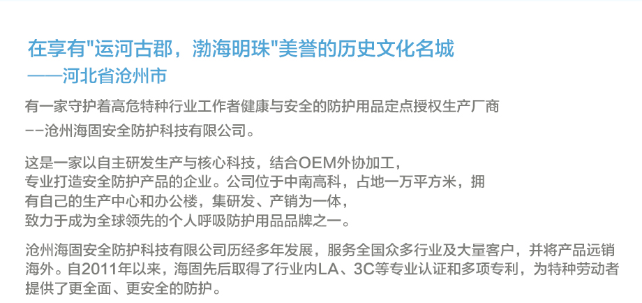 滄州海固安全防護(hù)科技有限公司,是一家以擁有自身獨(dú)創(chuàng)品牌與自主研發(fā)核心科技,結(jié)合OEM(代加工)產(chǎn)品授權(quán)生產(chǎn),專(zhuān)業(yè)打造安全防護(hù)產(chǎn)品的企業(yè)。專(zhuān)業(yè)的研發(fā)團(tuán)隊(duì)掌握關(guān)鍵核心技術(shù)負(fù)責(zé)設(shè)計(jì)和開(kāi)發(fā)新產(chǎn)品,靈活整合各類(lèi)資源渠道,嚴(yán)格的產(chǎn)品質(zhì)量把控和完善的售后服務(wù),已經(jīng)使海固公司一躍成長(zhǎng)為國(guó)內(nèi)專(zhuān)業(yè)的安全防護(hù)用品定點(diǎn)授權(quán)委托生產(chǎn)廠家及個(gè)人呼吸防護(hù)用品科技研發(fā)中心。