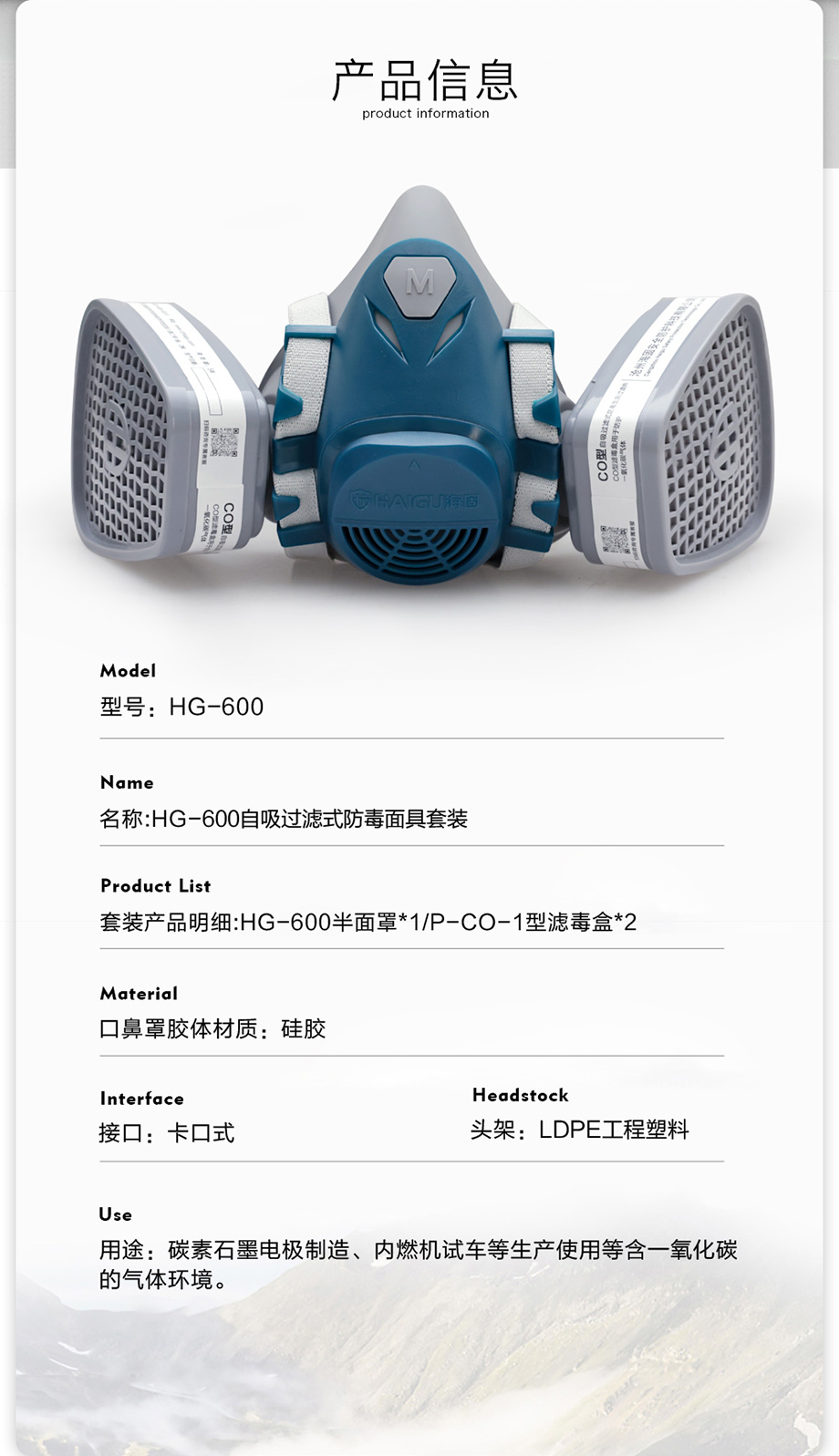 海固600半面罩+P-CO-1濾毒盒 防護一氧化碳氣體套裝