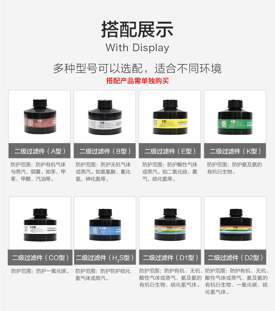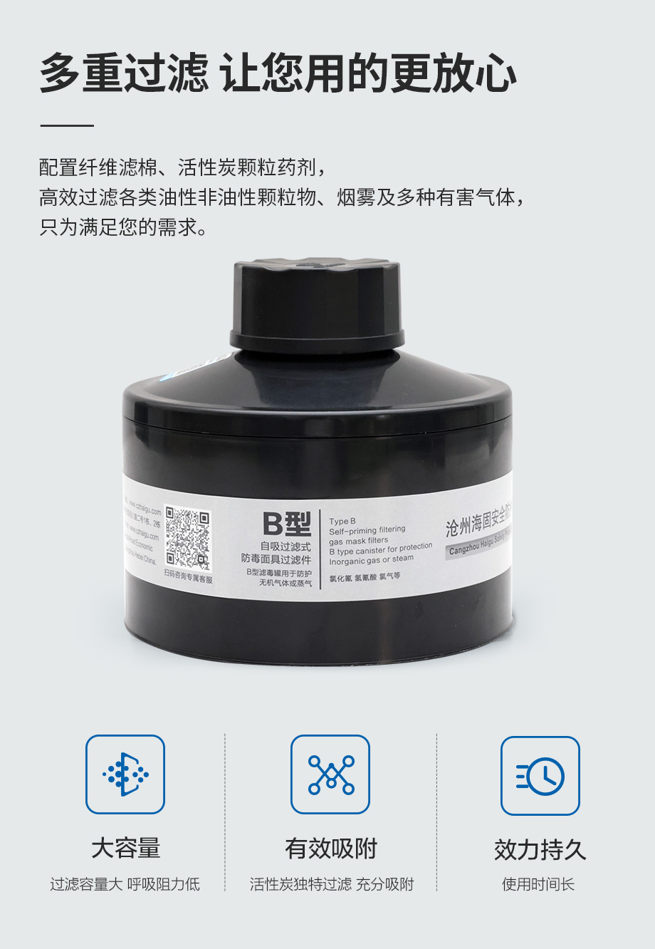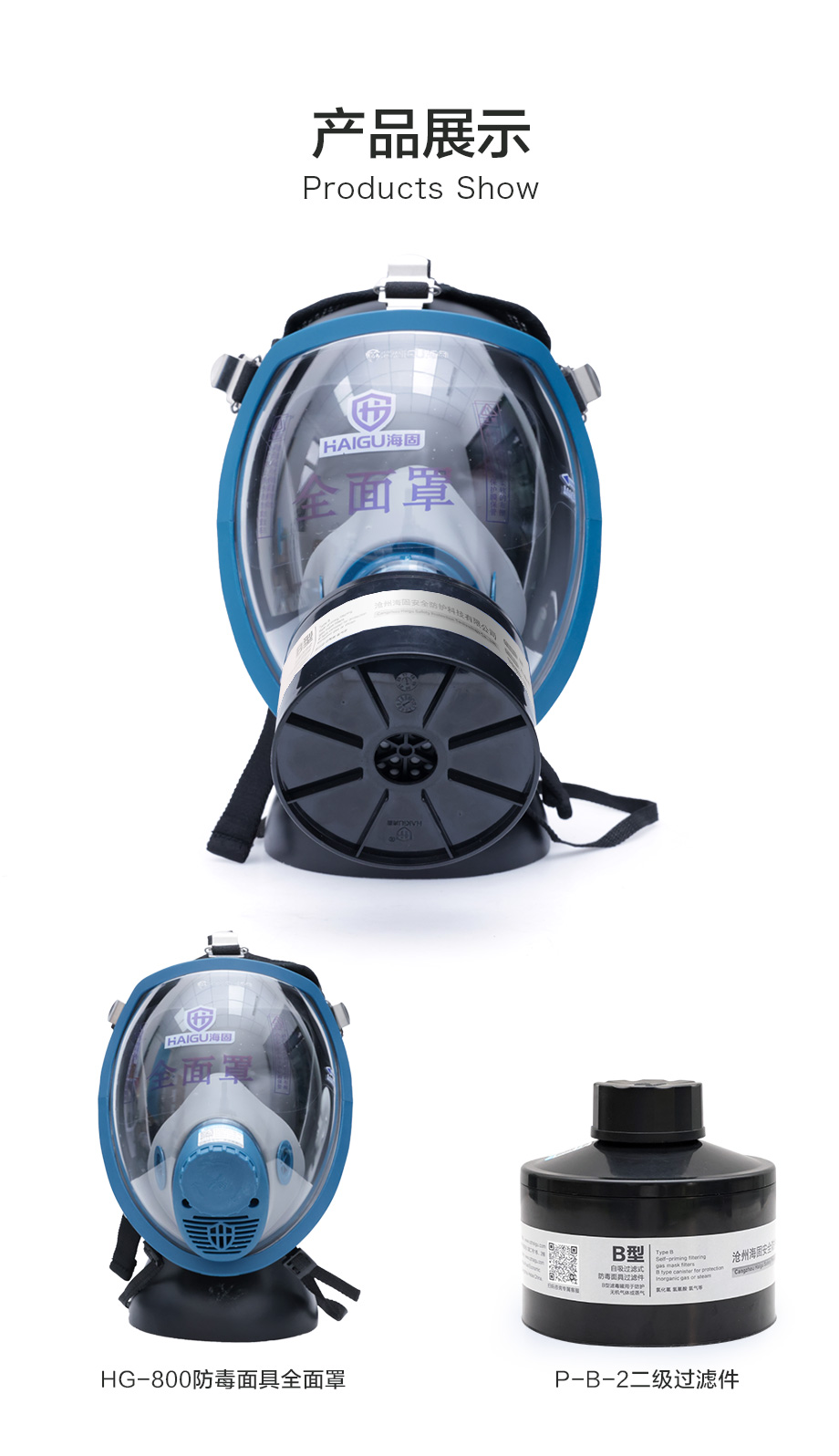 海固800全面罩+HG-ABS/P-B-2濾毒罐 無機氣體綜合防護套裝