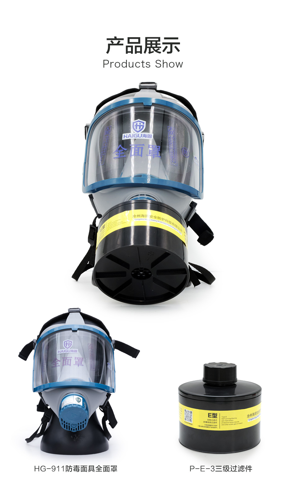 海固911全面罩+HG-ABS/P-E-3濾毒罐 酸性氣體專用