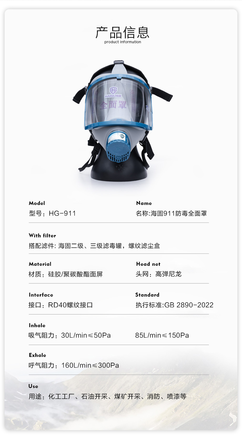 海固911全面罩 防毒防塵全面罩 工業(yè)防毒面具