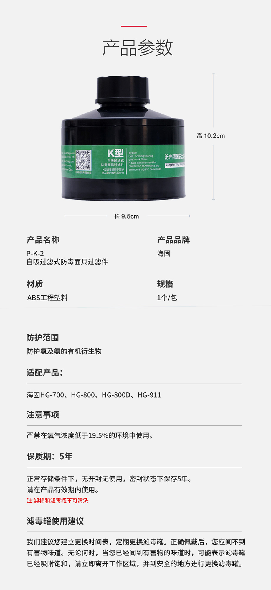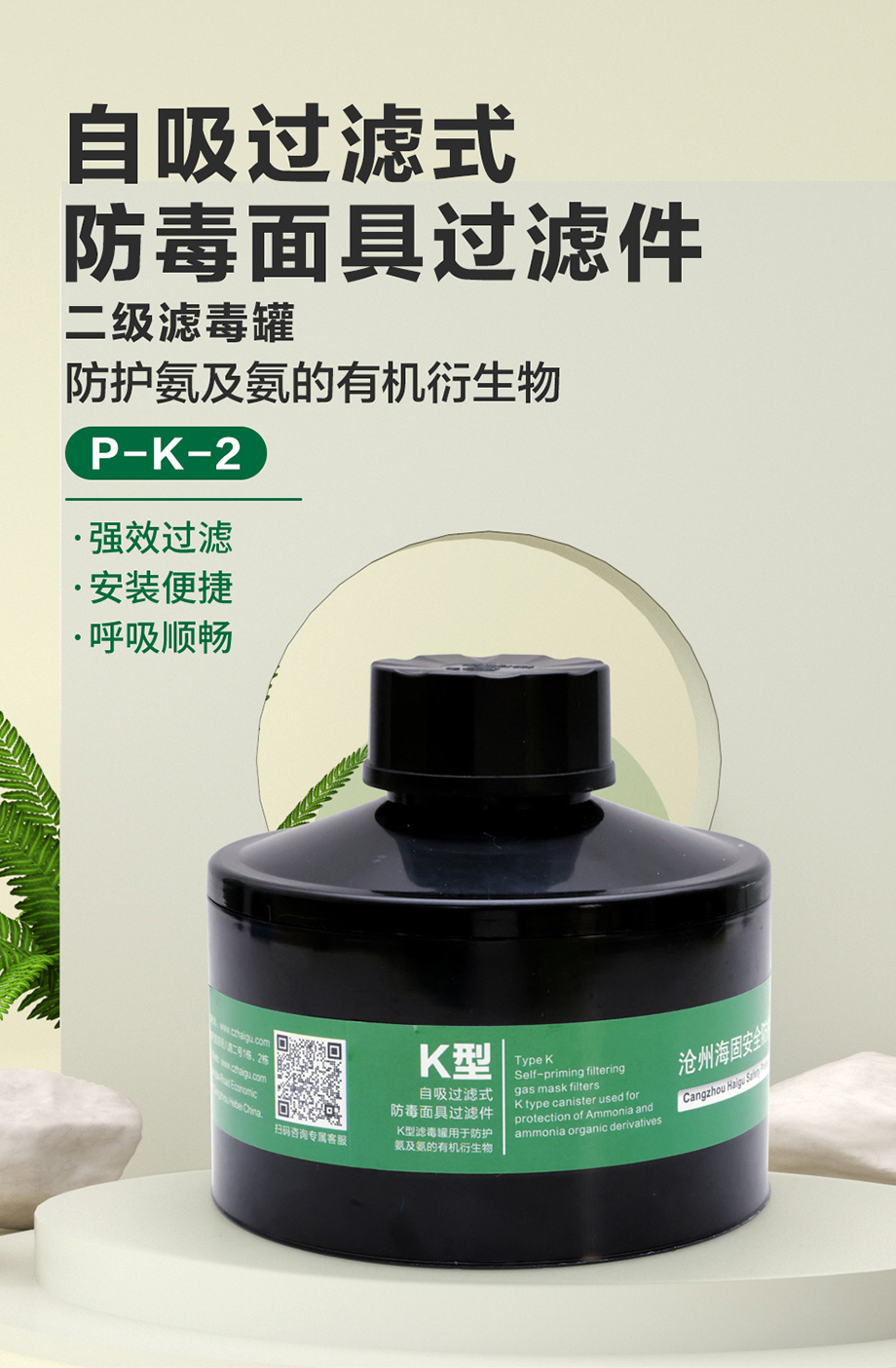 海固P-K-2級(jí)濾毒罐 氨及氨的有機(jī)衍生物防護(hù)