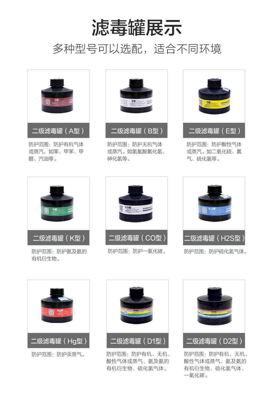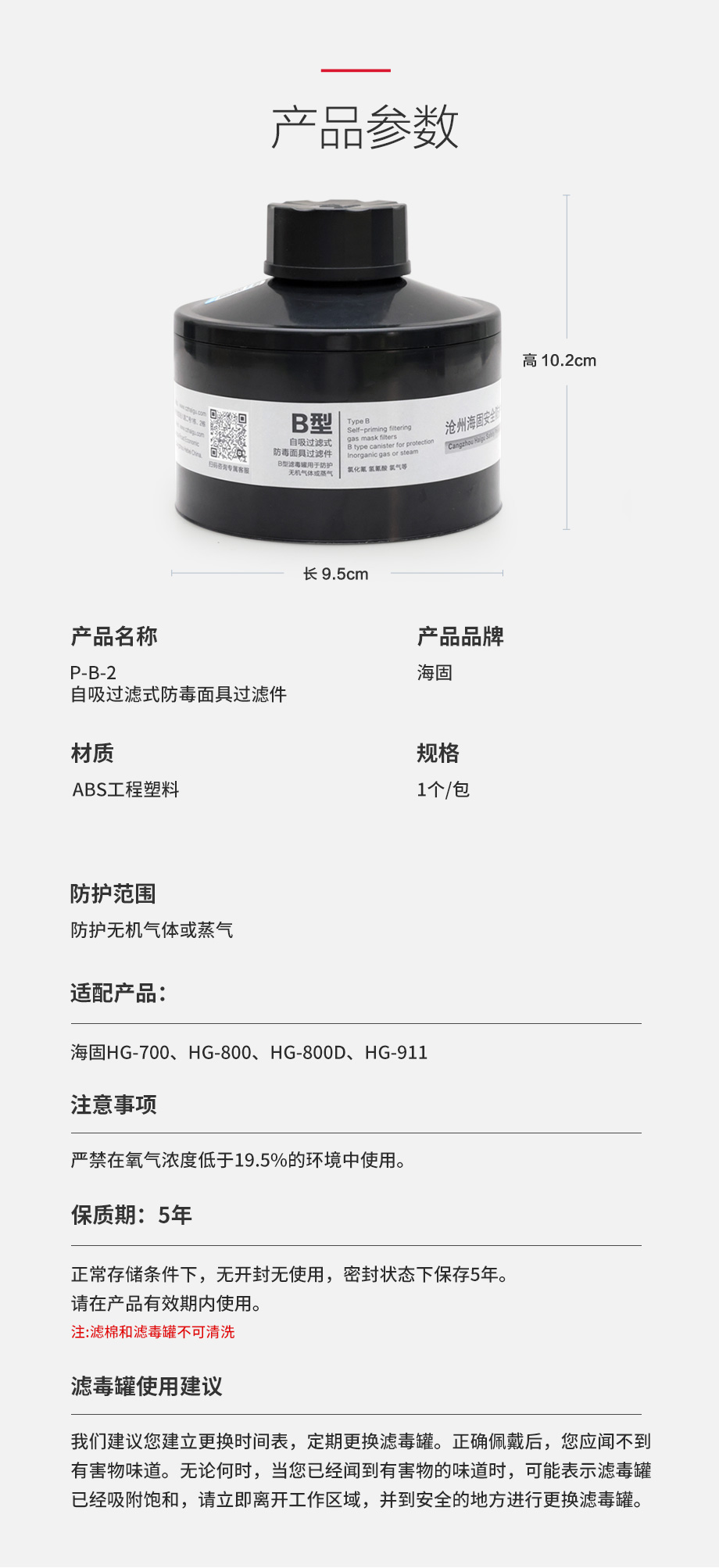 海固P-B-2濾毒罐 無機氣體 氯化氫、氫氰酸、氯氣 綜合防護