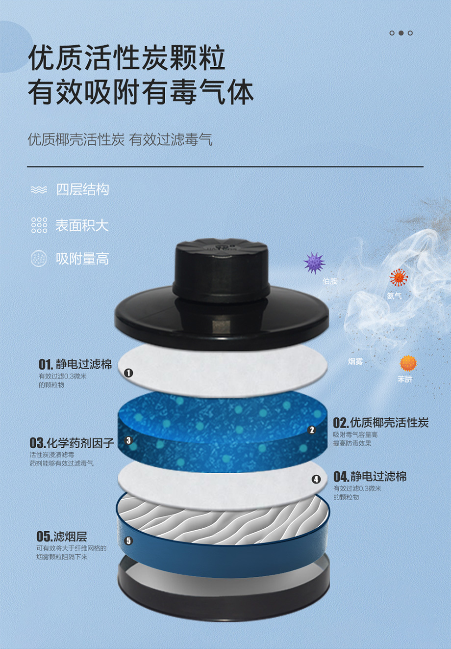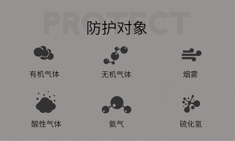 防護(hù)范圍:主要防護(hù)有機(jī)、無機(jī)氣體、酸性氣體、氨氣、硫化氫氣體及煙霧