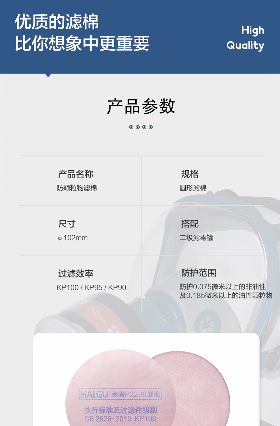 海固2系2級(jí)KP圓形濾棉 KP100/KP95/KP90油性及非油性顆粒物濾棉