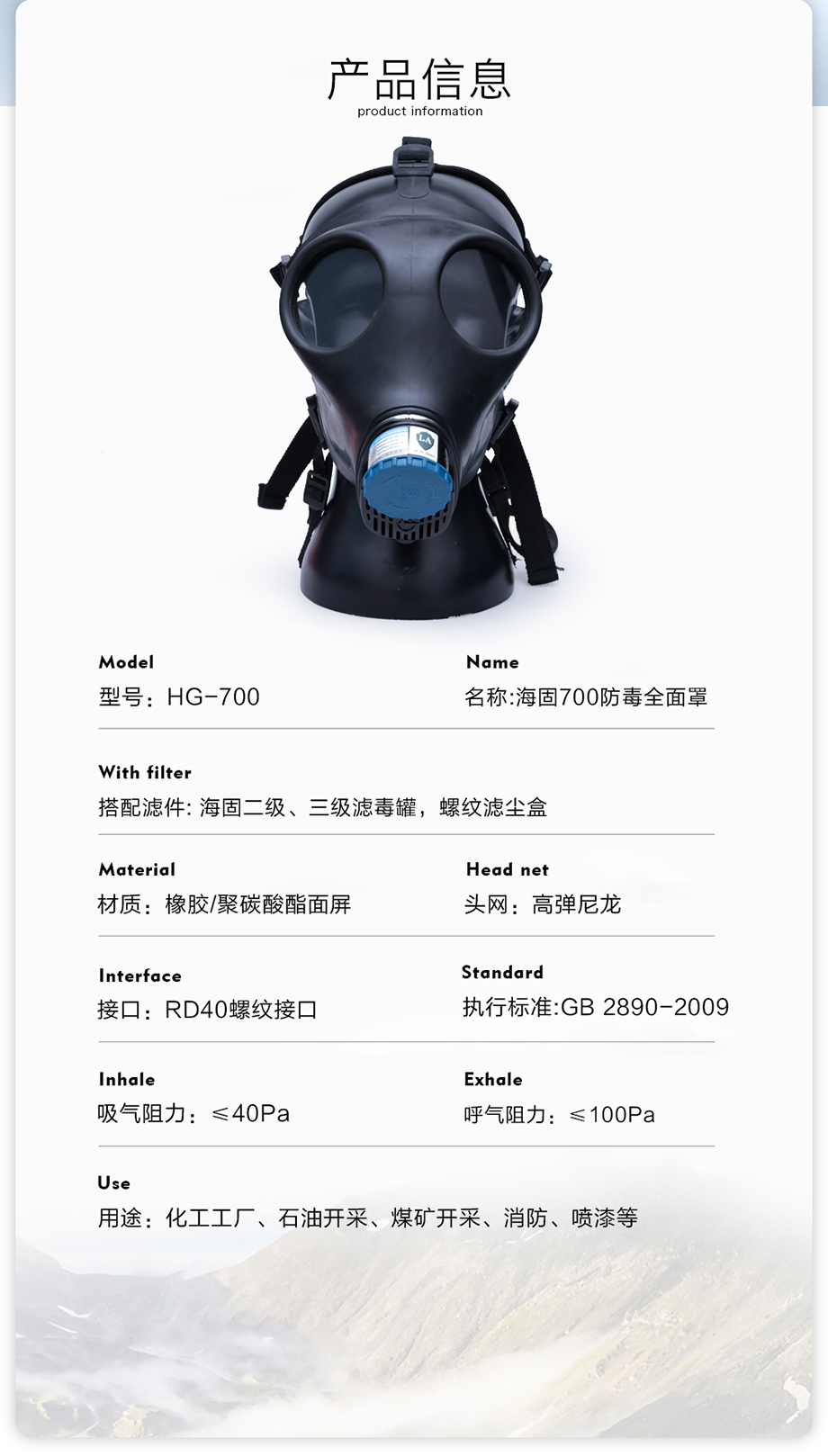 海固HG-700全面罩 噴漆化工防毒氣防毒面具