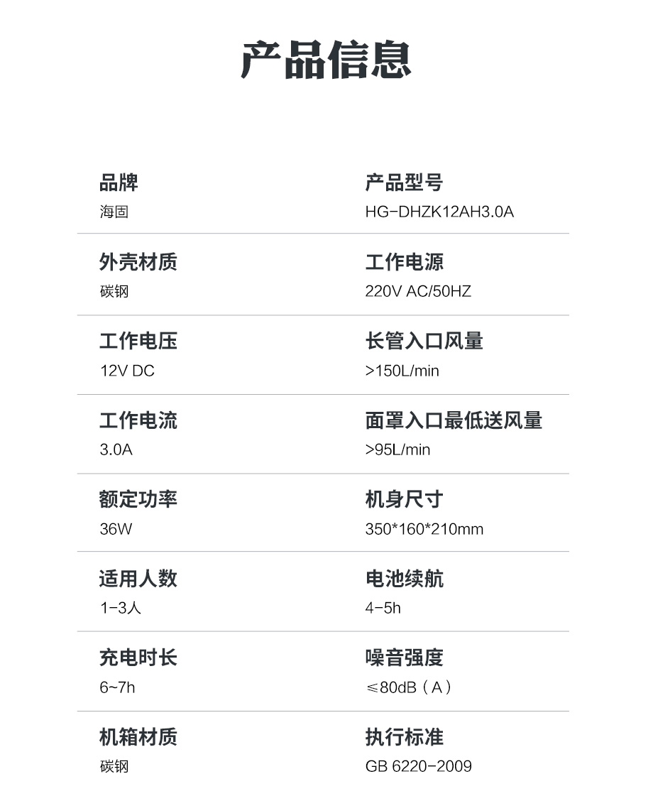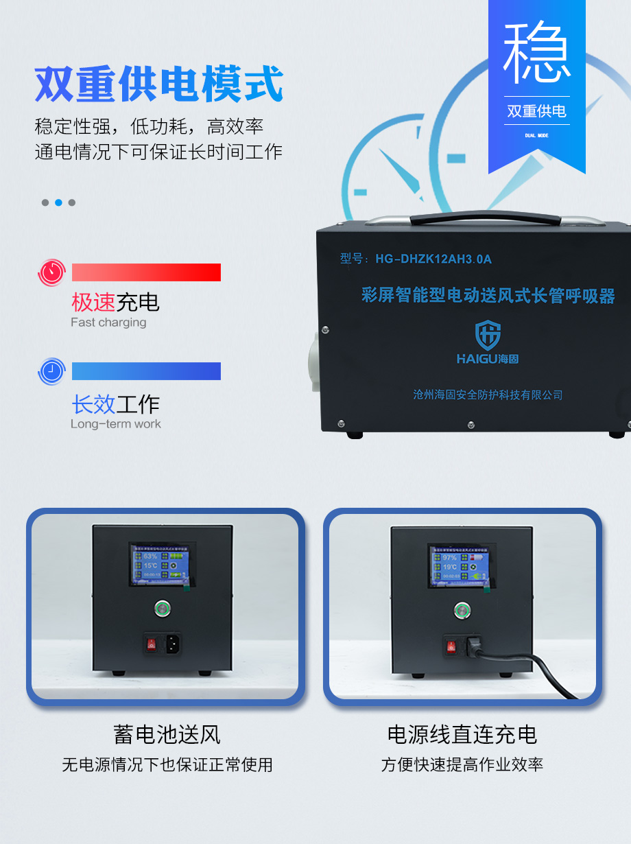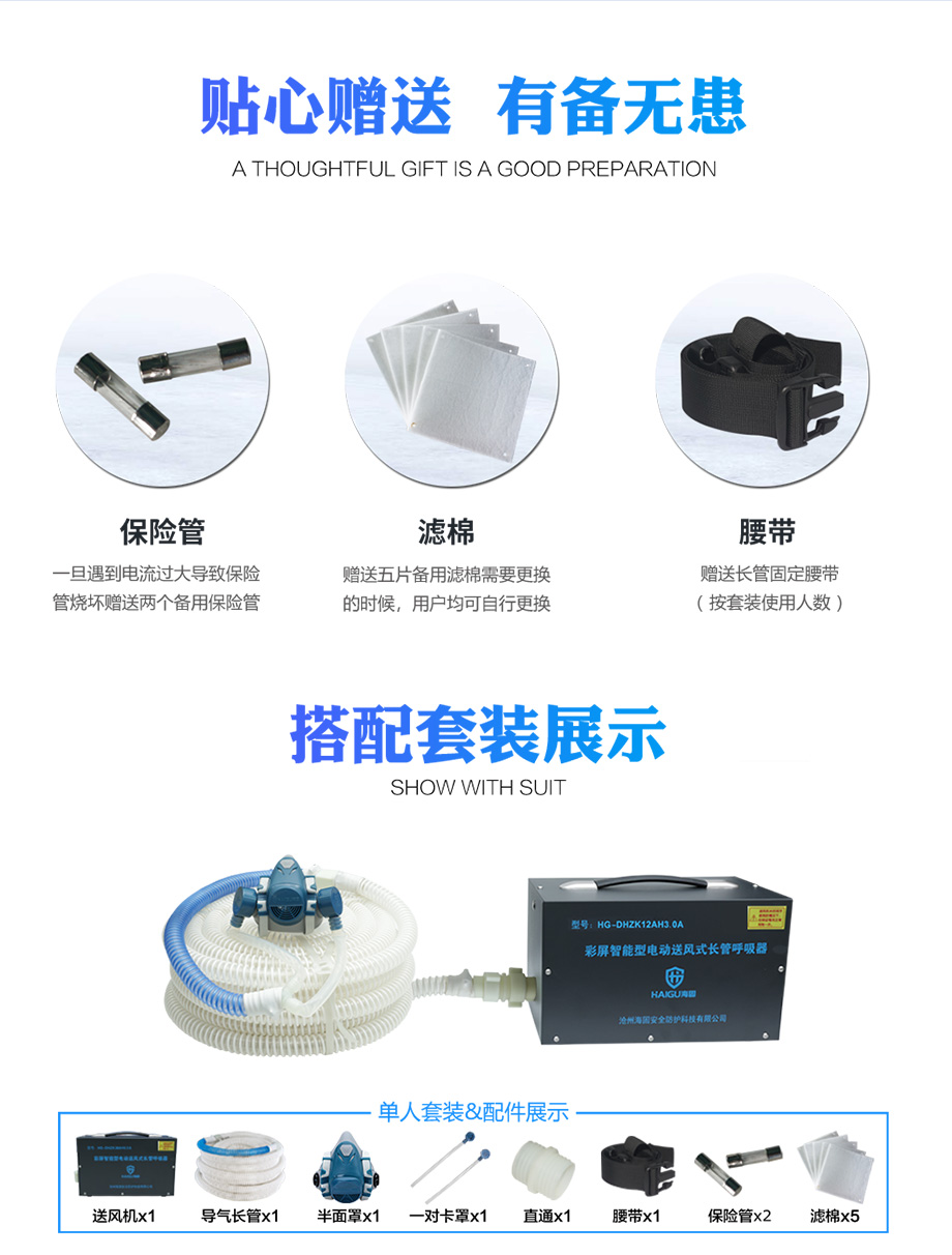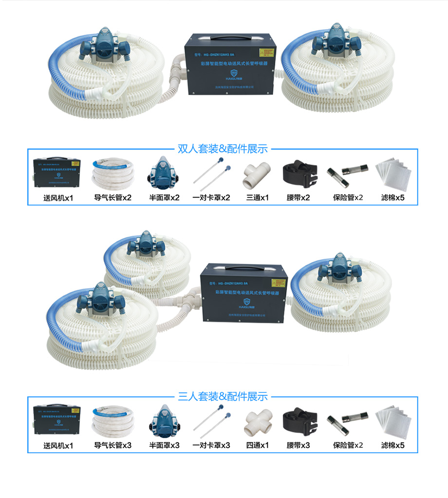 海固HG-DHZK12AH3.0A智能型彩屏 半面罩 三人電動(dòng)送風(fēng)式長管呼吸器