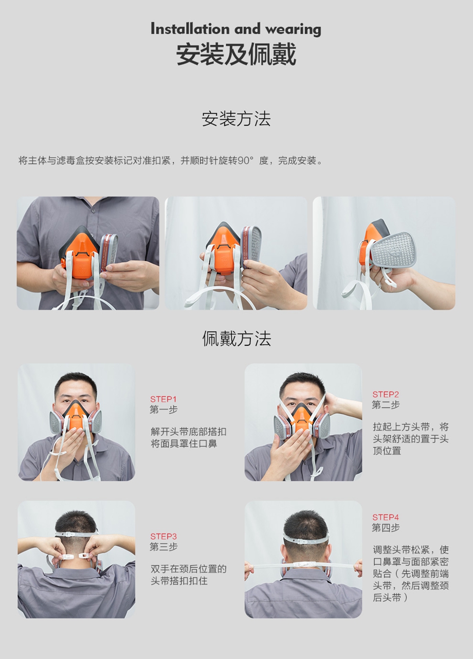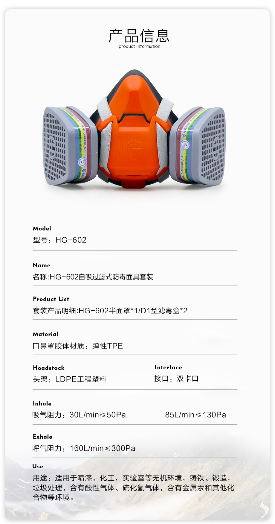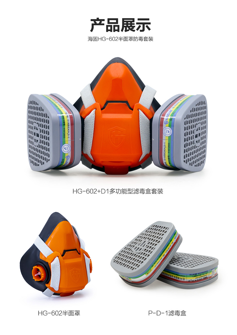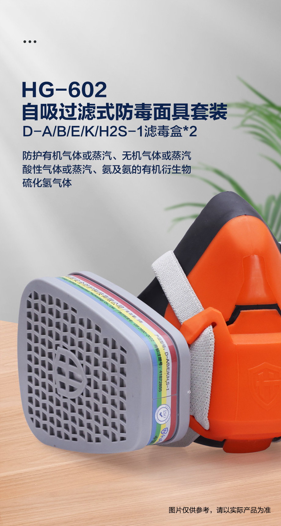海固602半面罩+D-A/B/E/K/H2S-1濾毒盒 多氣體防護(hù)套裝
