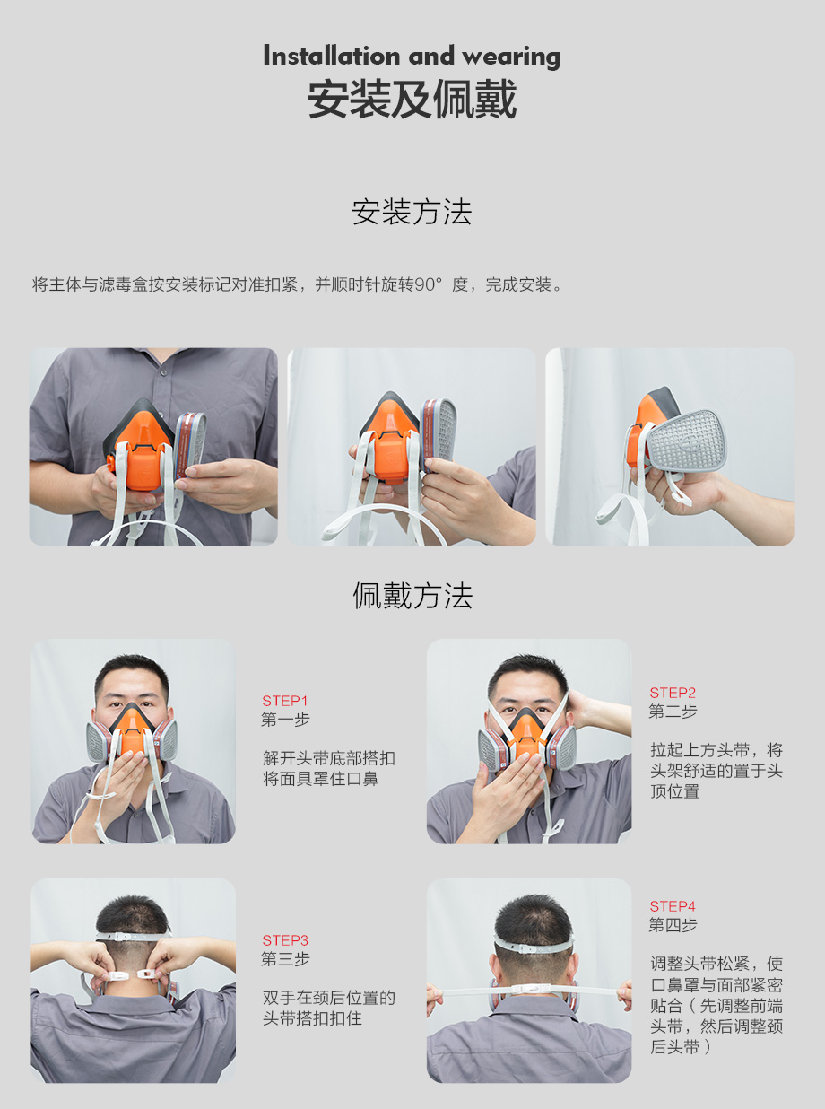 海固602半面罩+P-K-1濾毒盒 氨氣防護(hù)套裝