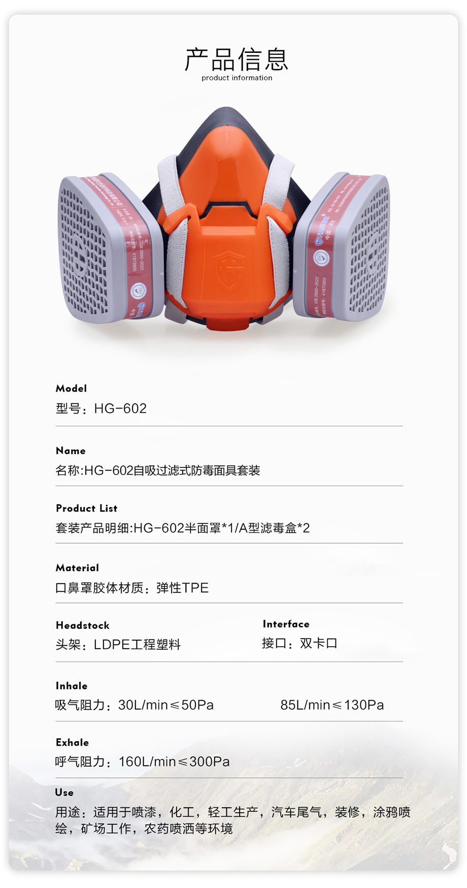 海固602半面罩+P-A-1濾毒盒 有機氣體防護套裝