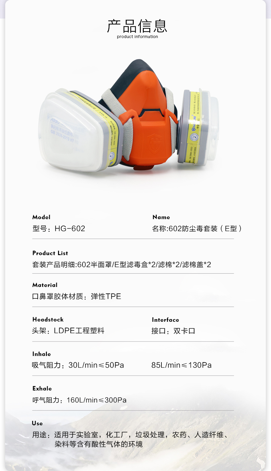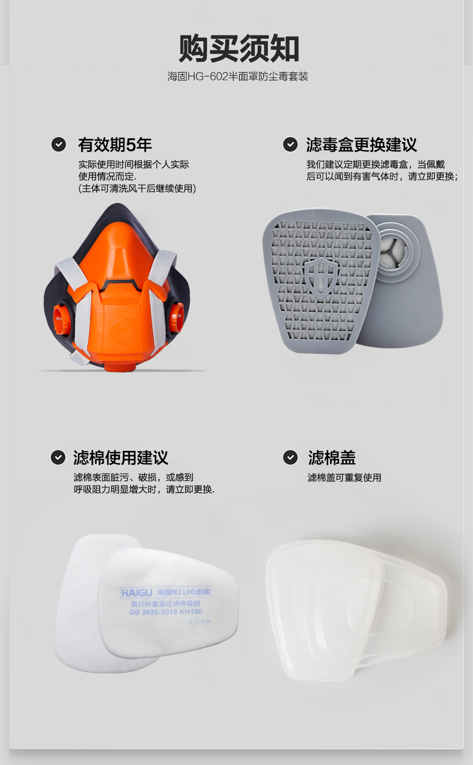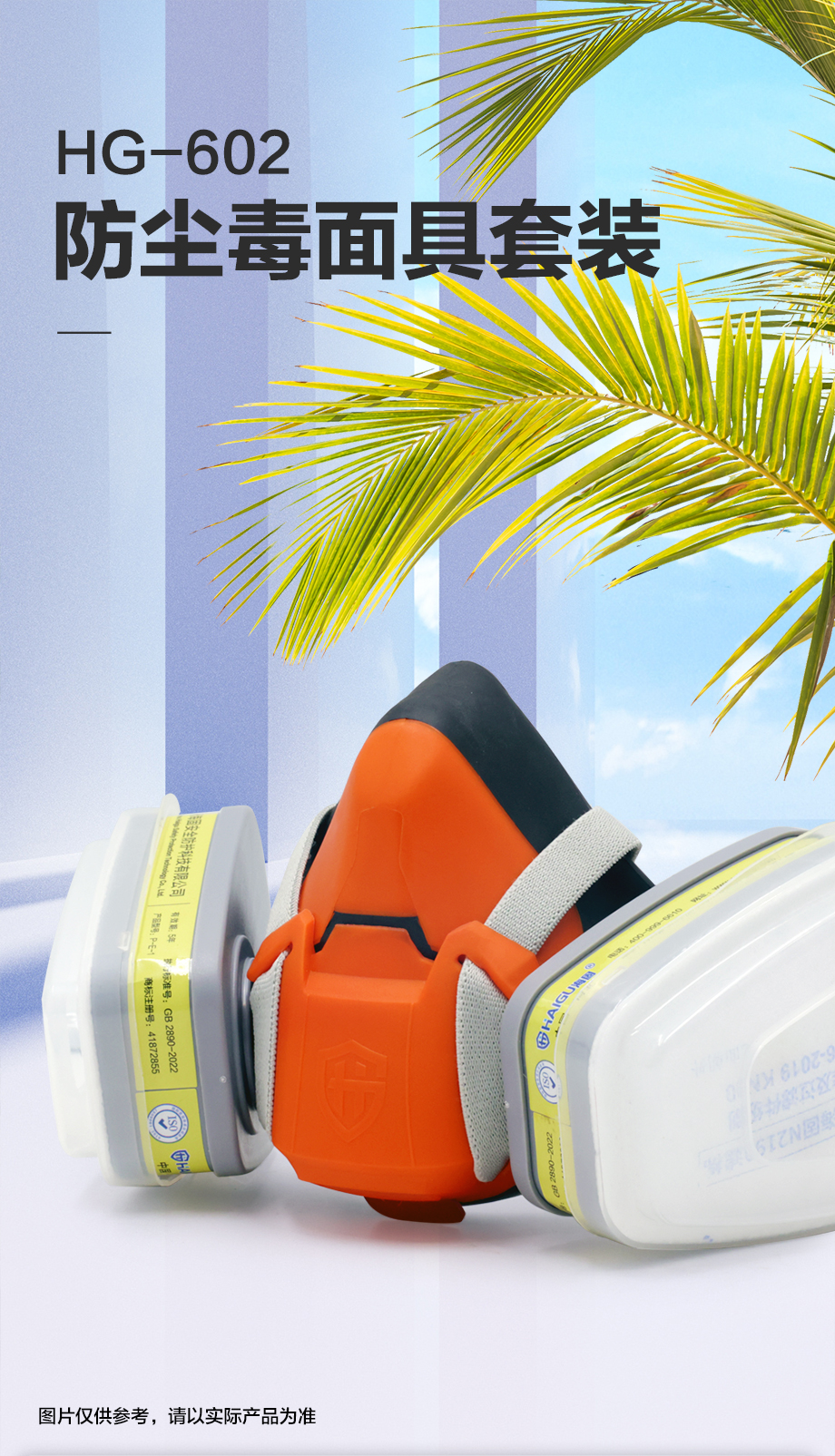 海固HG-602半面罩+P-E-1濾毒盒+濾棉+T形濾棉蓋 防塵毒套裝