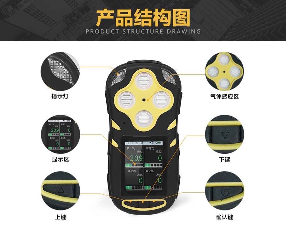 海固HG-FK4彩屏擴散式四合一氣體檢測儀