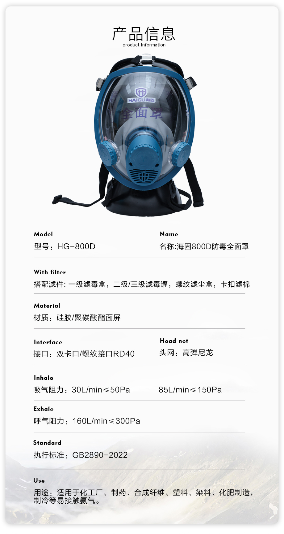 海固800D全面罩+HG-ABS/P-K-3濾毒罐 氨氣防護(hù)套裝
