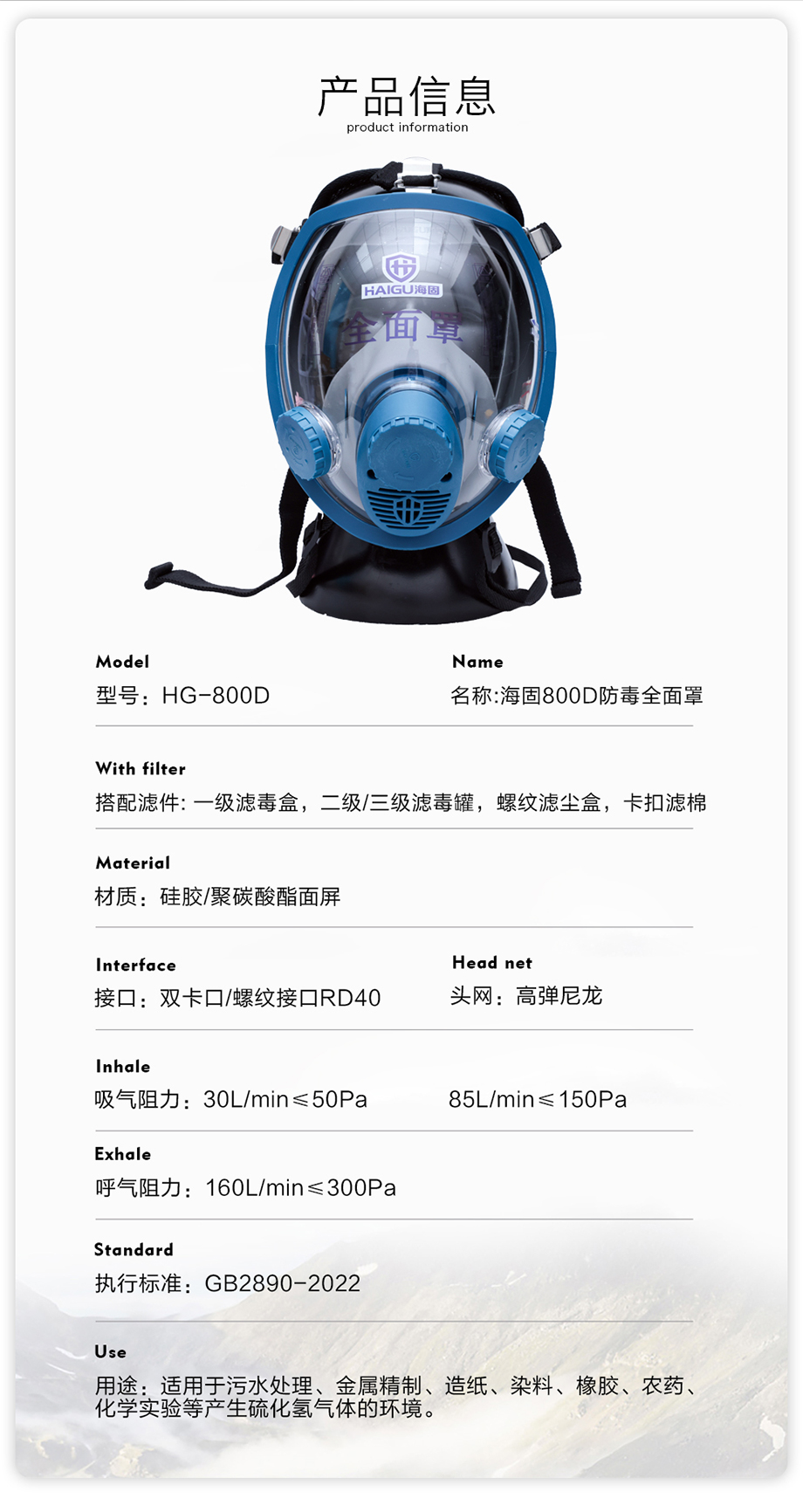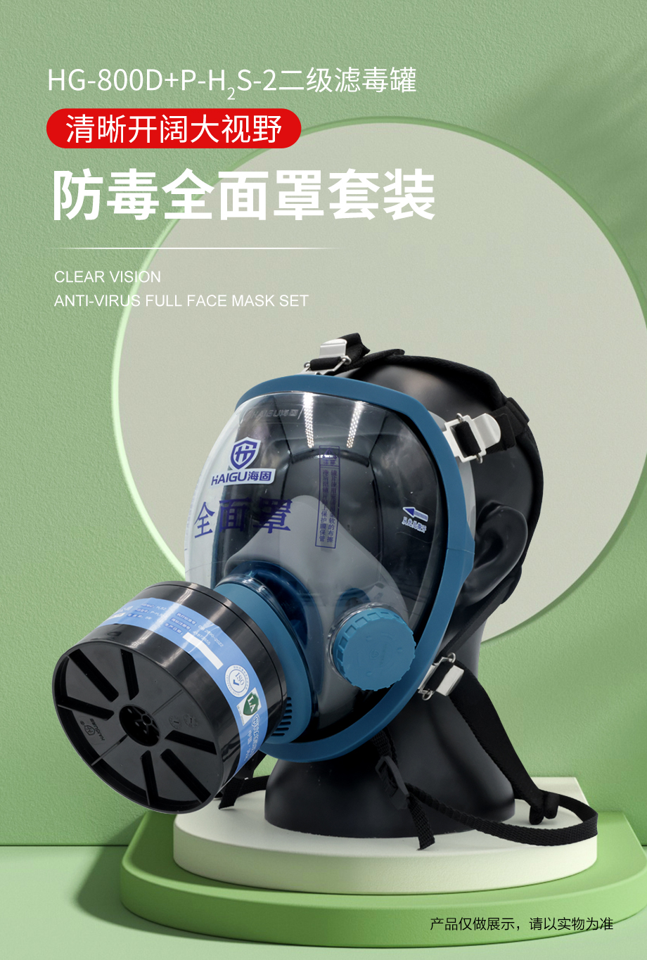 海固800D全面罩+HG-ABS/P-H2S-2濾毒罐 硫化氫氣體防護(hù)套裝