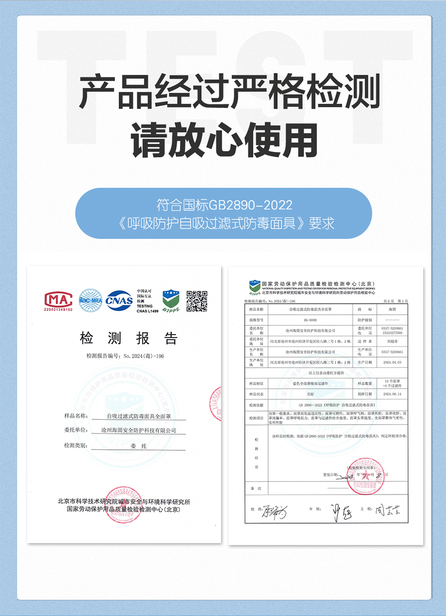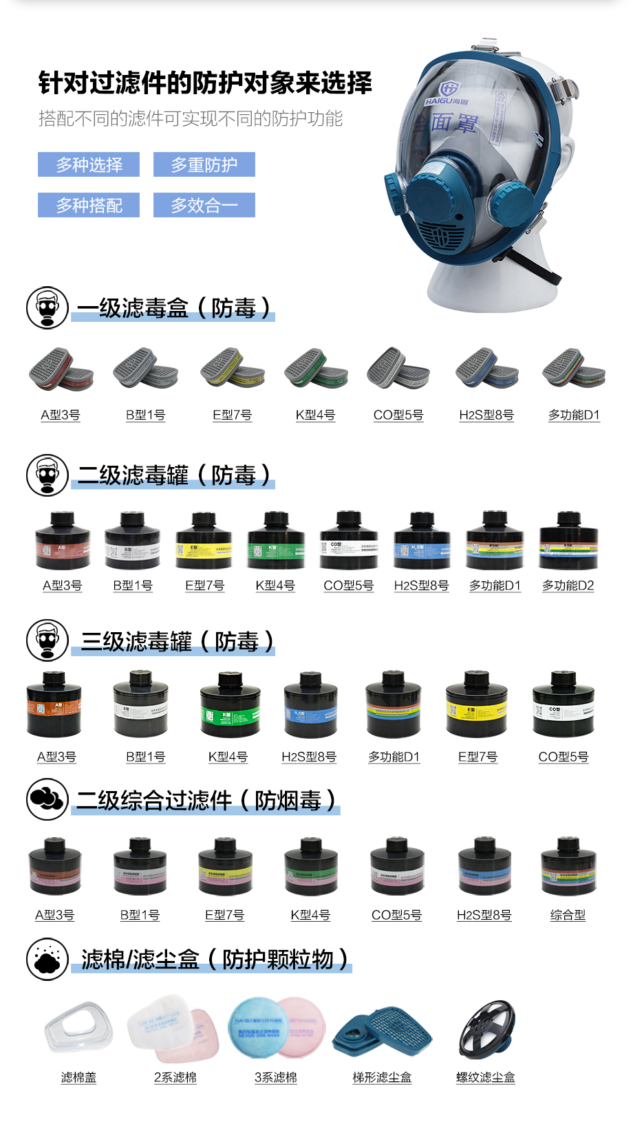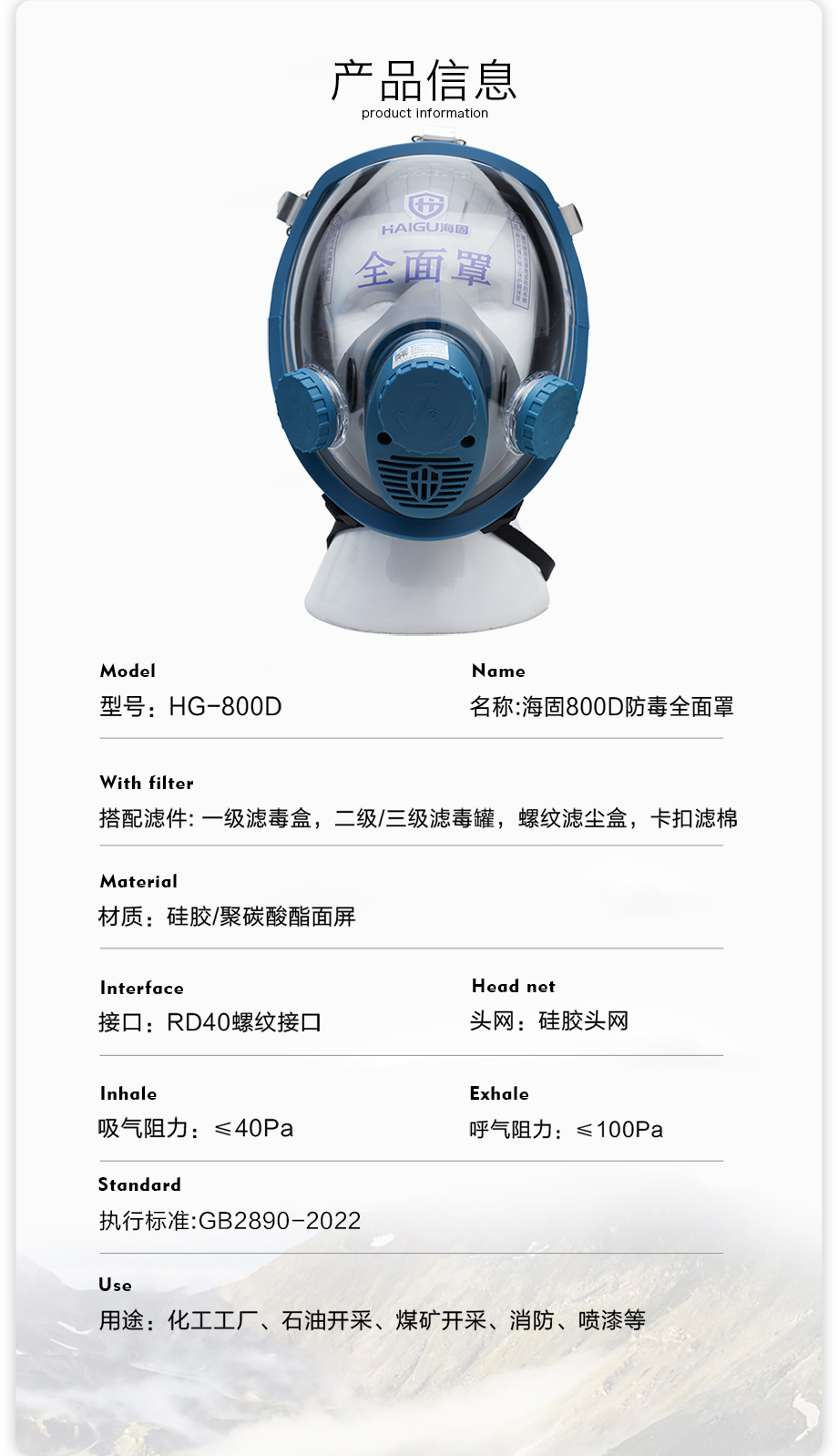 海固HG-800D自吸過濾式防毒面具全面罩 硅膠頭網(wǎng)款