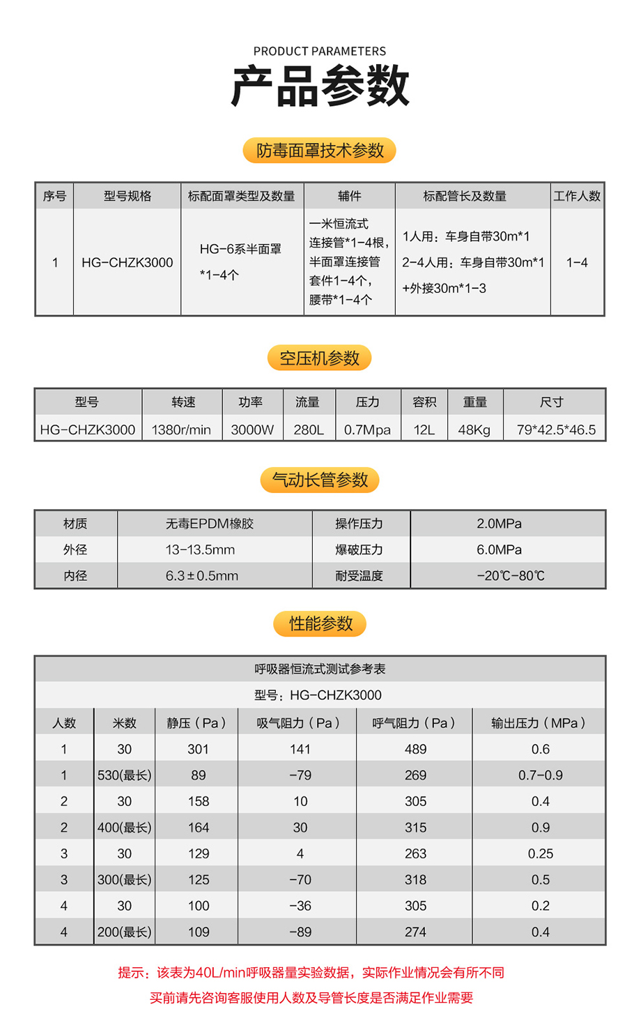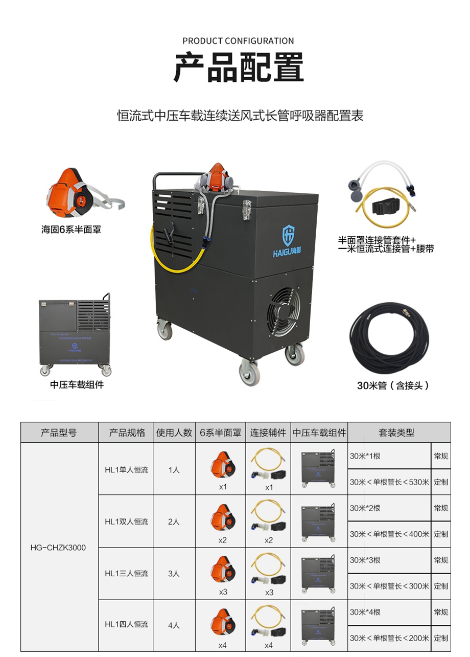 海固HG-CHZK3000搭配半面罩中壓車載連續(xù)送風式長管呼吸