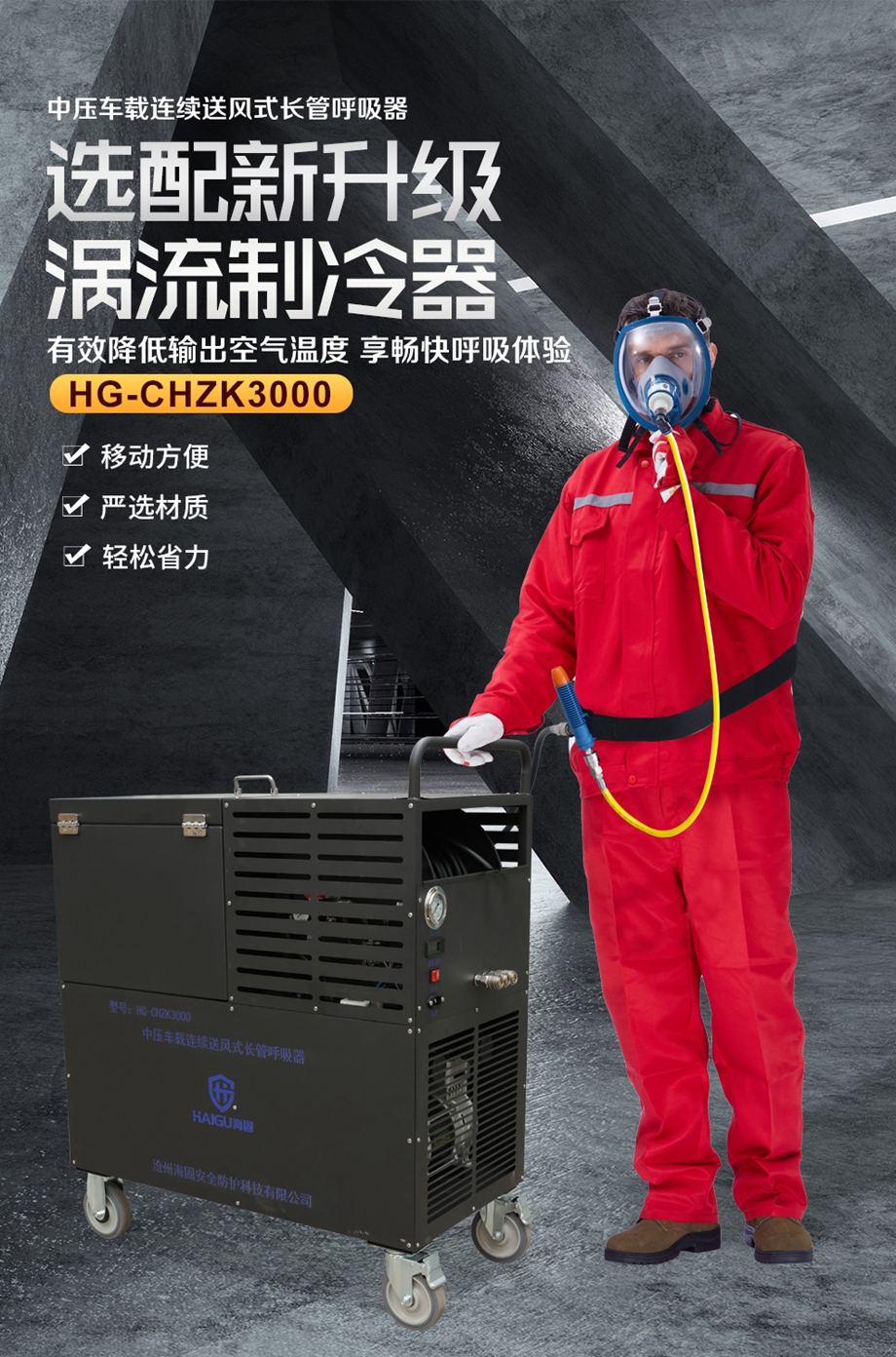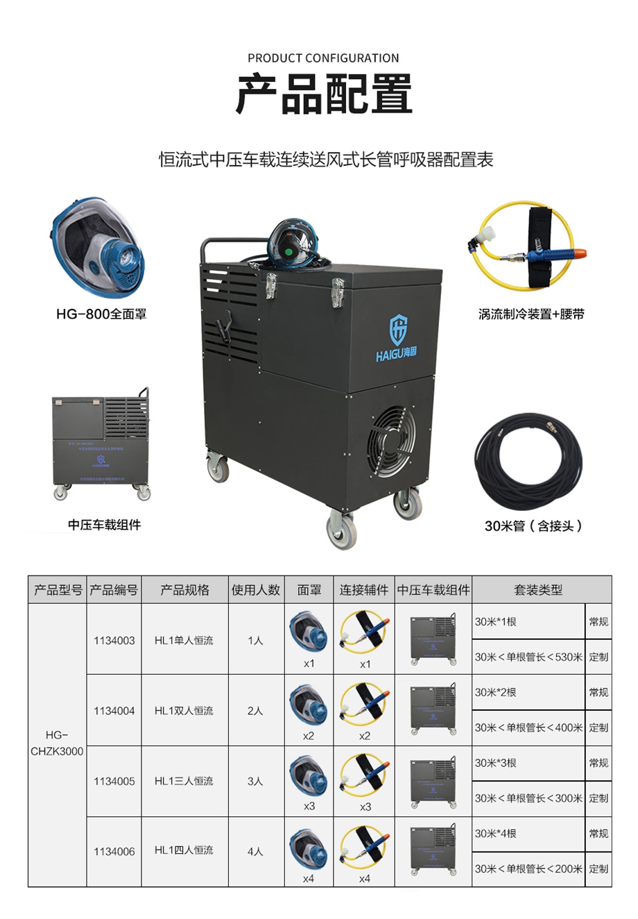 海固HG-CHZK3000中壓車載連續(xù)送風(fēng)式長管呼吸器+渦流制冷器(恒流式)
