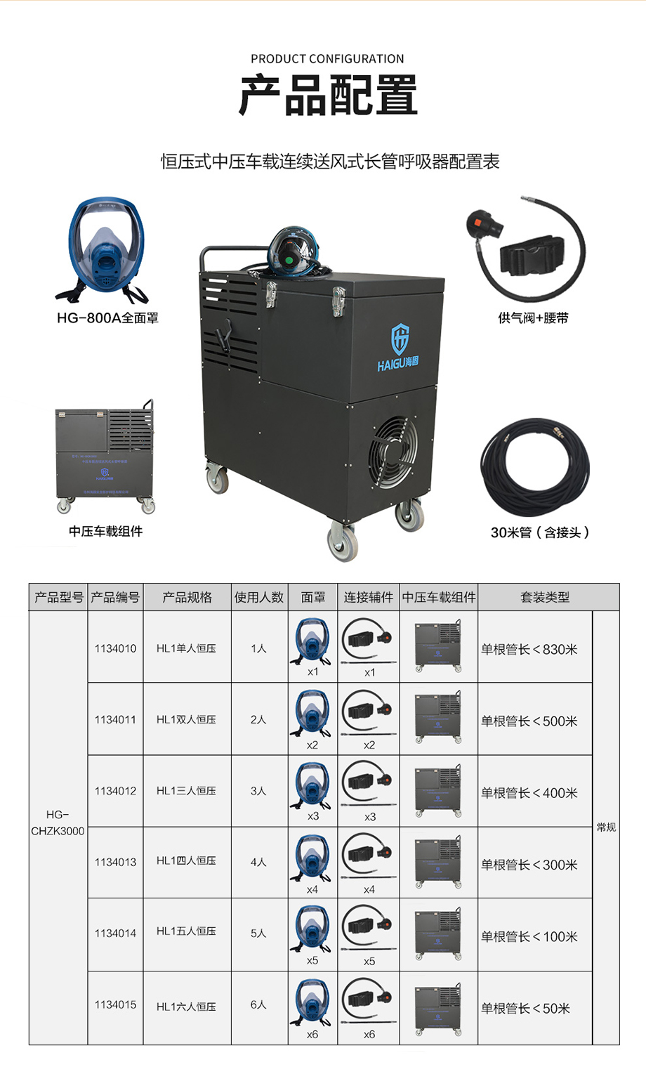 海固HG-CHZK3000恒壓式中壓車載連續(xù)送風(fēng)式長管呼吸器