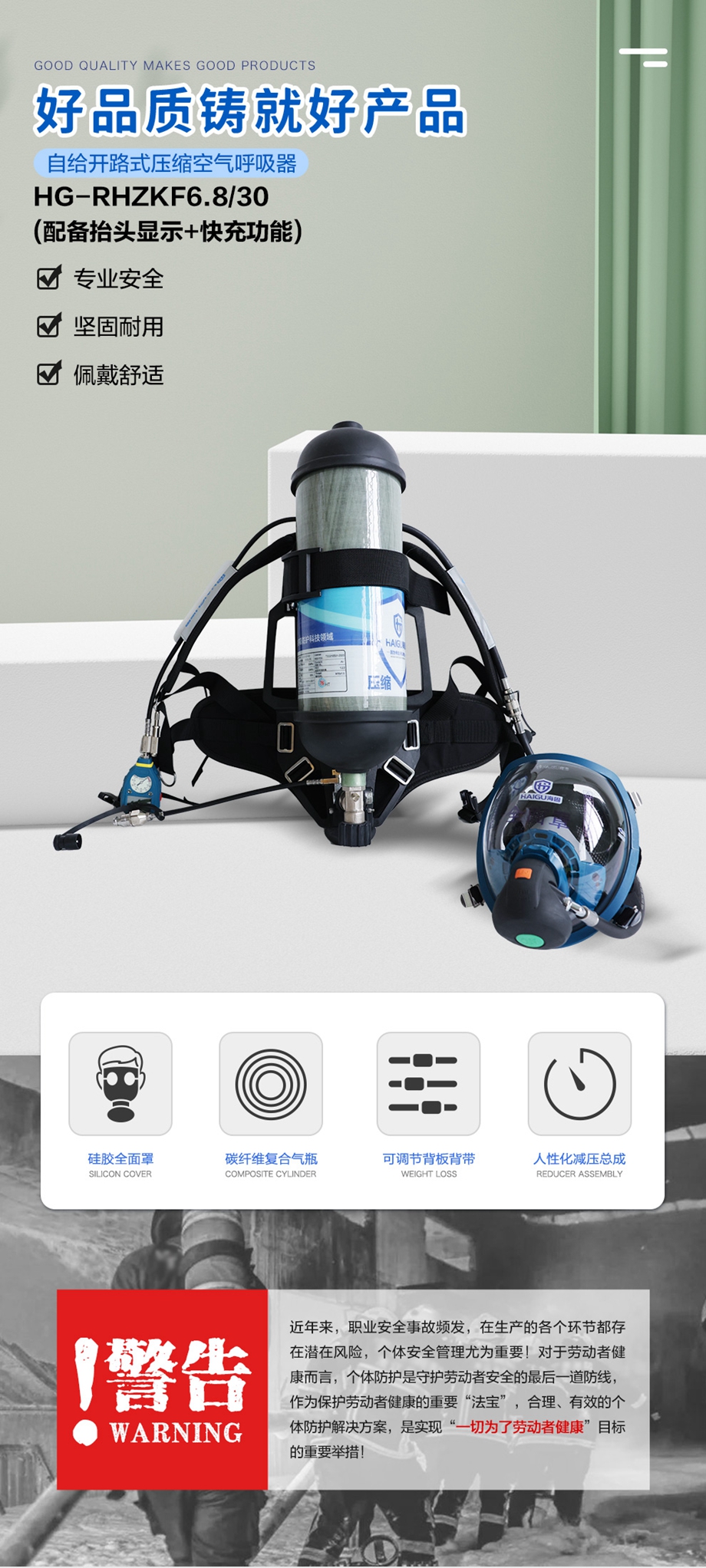 海固RHZKF6.8/30 正壓式空氣呼吸器 抬頭顯示+快充功能 碳纖維復(fù)合氣瓶