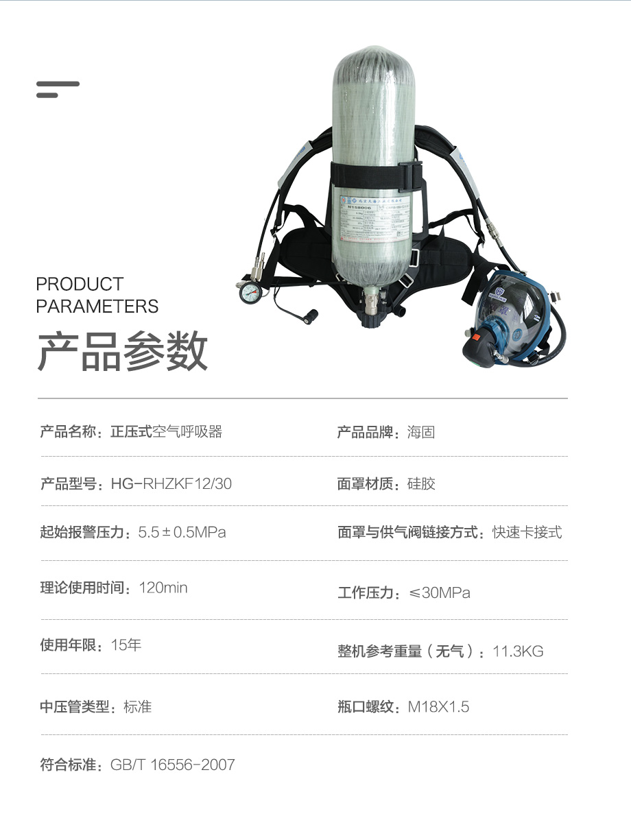 海固RHZKF12C/30(快充款) 正壓快充式空氣呼吸器 快速充氣 碳纖維復(fù)合氣瓶