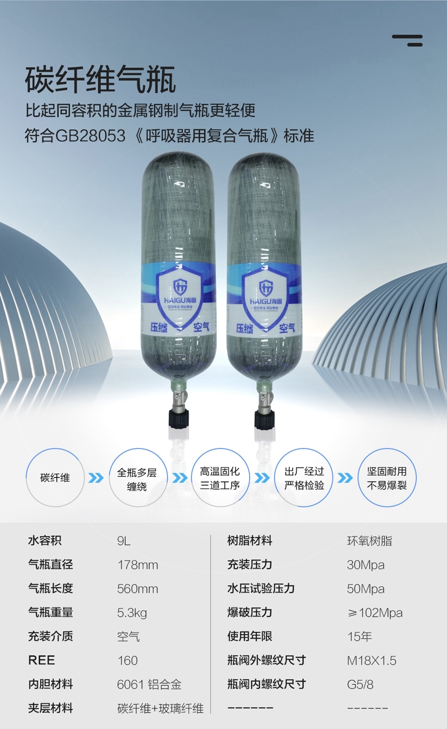 海固RHZKF9/30 自鎖帶表正壓式空氣呼吸器 氣瓶帶自鎖瓶閥